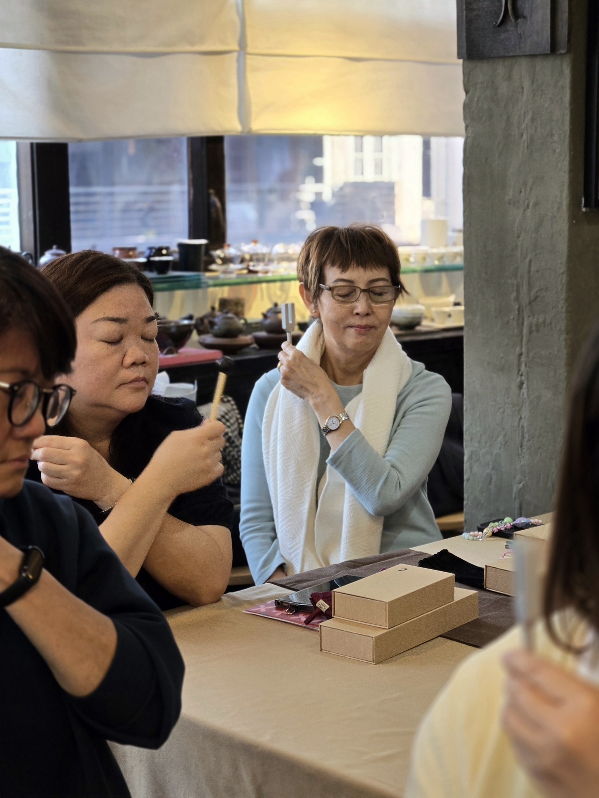 我教了另一位同學用音叉細緻地跟濕疹對話,