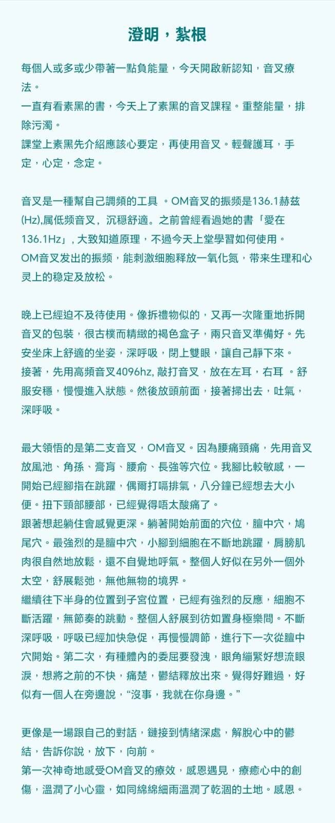 第一次神奇地感受OM音叉的療效,